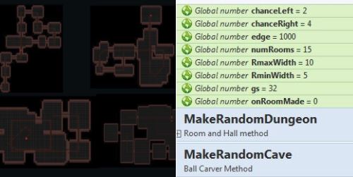 Also it tended to make redundant floors and walls over each other which happens when you're throwing stuff around random -willy-nilly. It required some clean-up which was more collision checks in nested waits or with timed triggers or something.